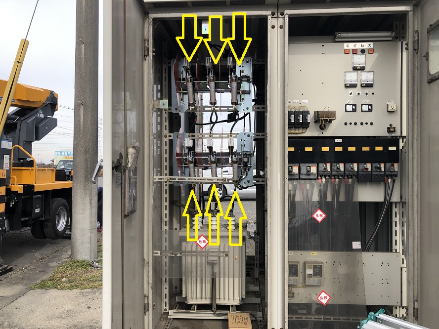 前回、主幹用のLBSを取り外しましたので、今回は高圧進相コンデンサ用のLBSを取り外します。