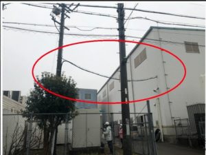 赤丸の既設幹線のうえにメッセンをはり架空配線します。